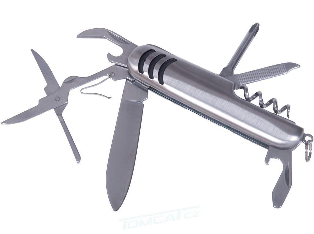Kapesní nůž 7 v 1, vývrtka, otevírák na konzervy a nápoje, šroubovák, pilník, nůžky.