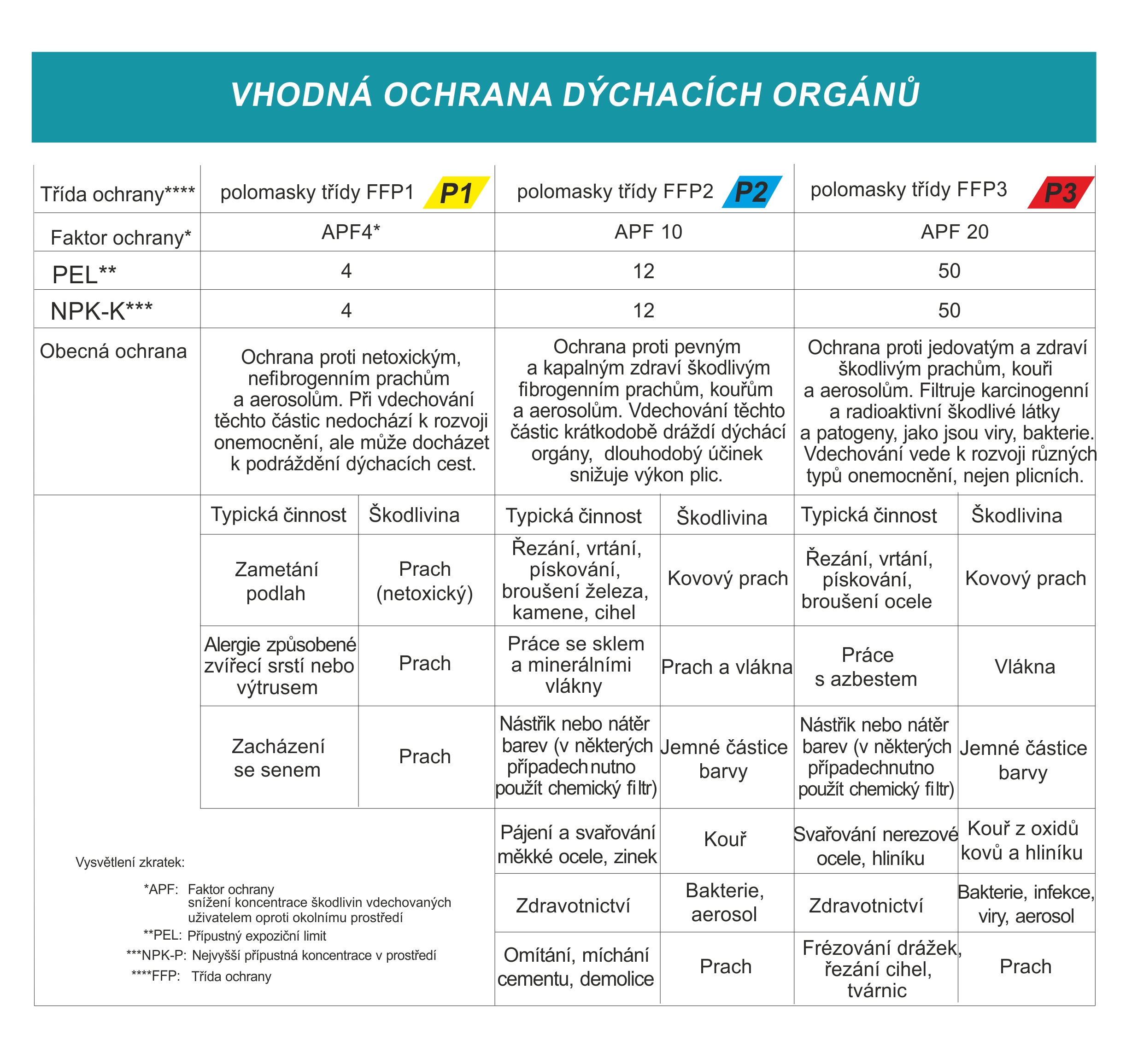 - ochrana proti tuhým a kapalným částicím v koncentraci do 4 NPK-P