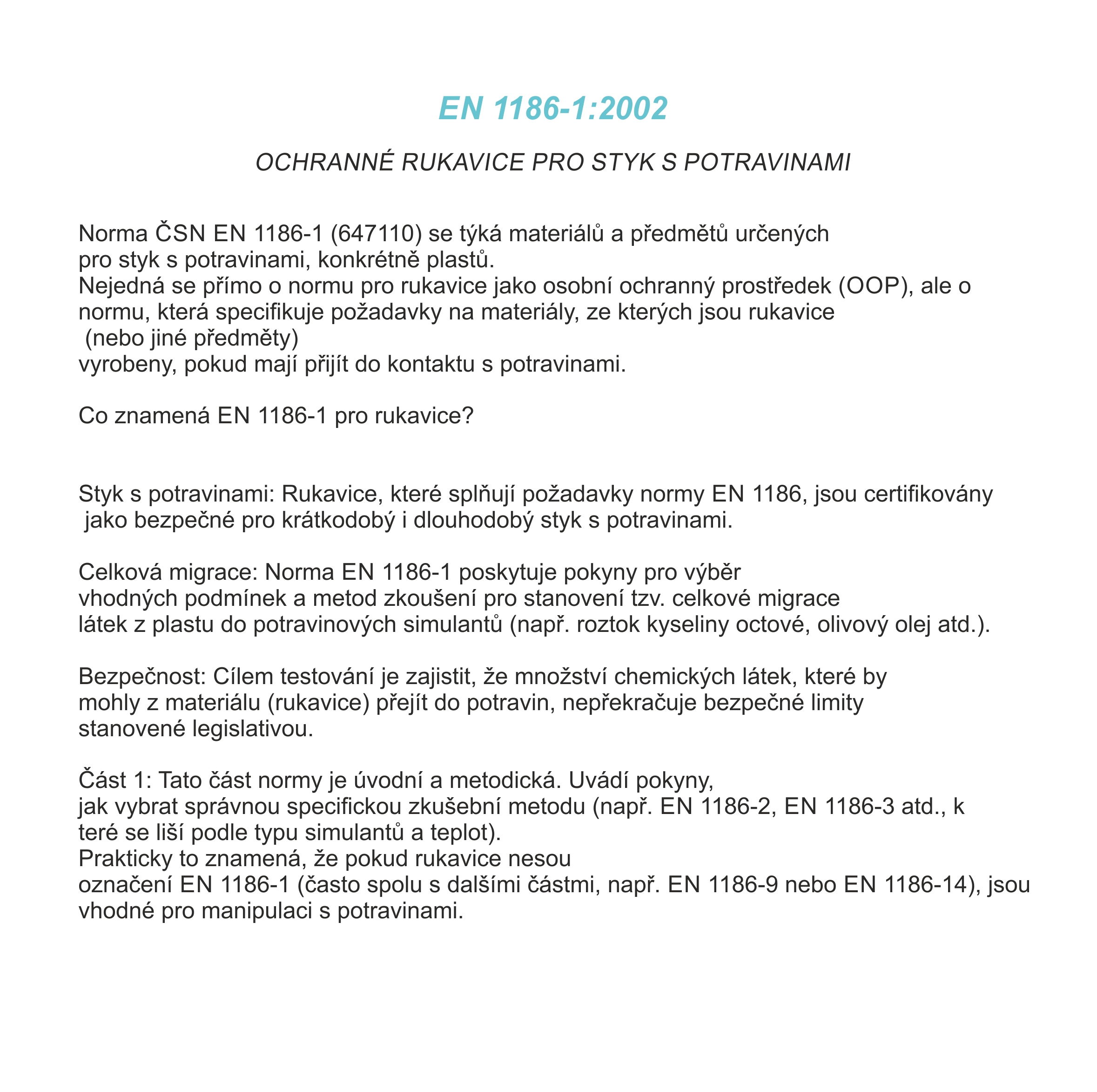 | Normy | EN ISO 21420 , EN ISO 374-1 Typ/Type B, EN ISO 374-5, EN 1186 |