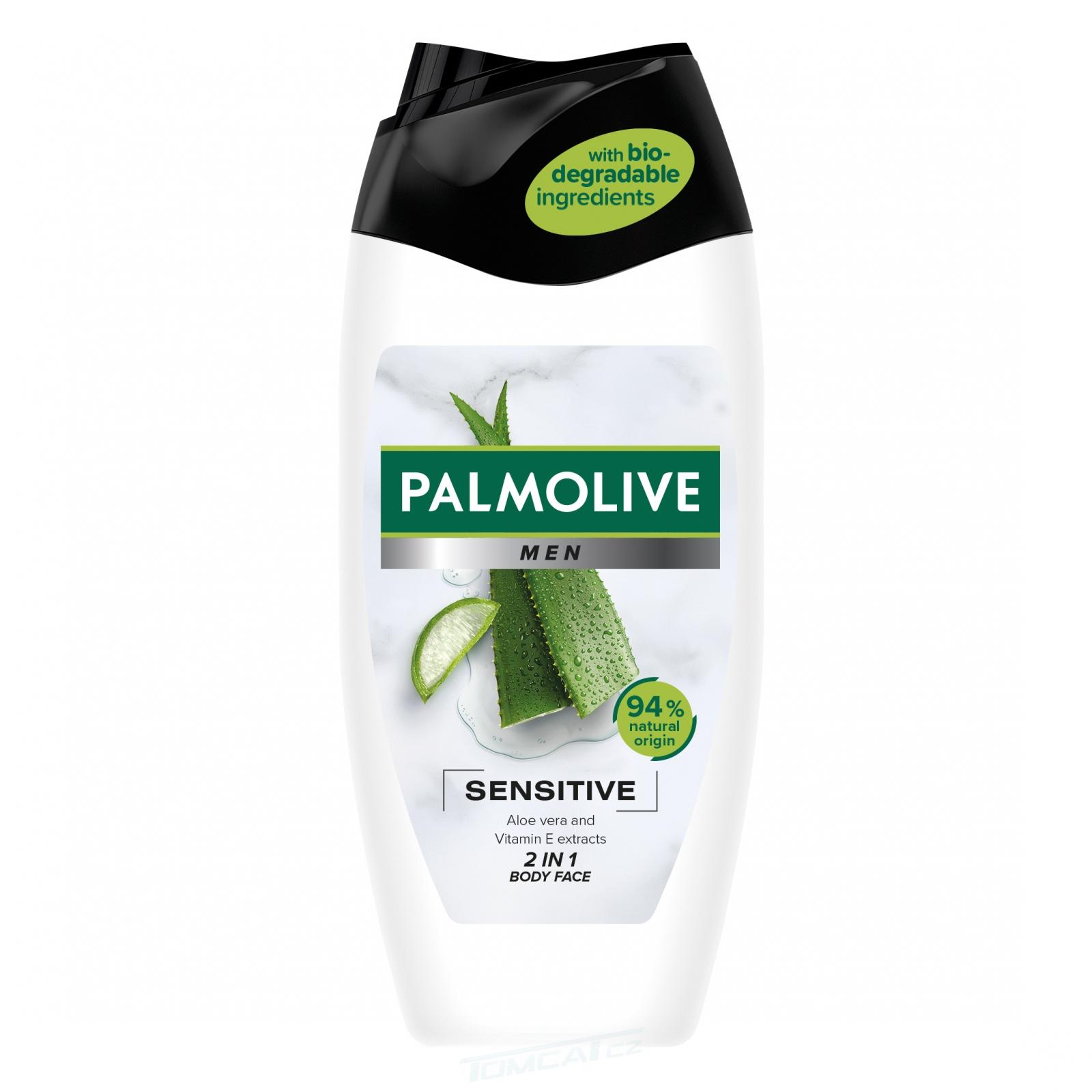 Sprchový gel PALMOLIVE For Men Sensitive 250 ml, pro citlivou pokožku, obohacený o aloe vera a vitamín E, dermatologicky testováno.