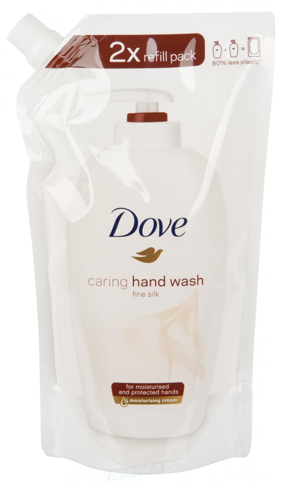DOVE mýdlo tekuté Silk náplň 500 ml, hedvábné tekuté mýdlo s bohatými zvláčňujícími hydratačními složkami.