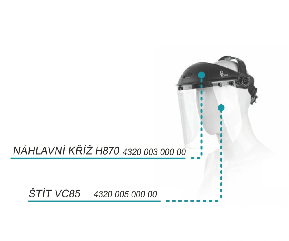- Kombinovaná ochrana hlavy: Náhlavní kříž H870 s polykarbonátovým štítem