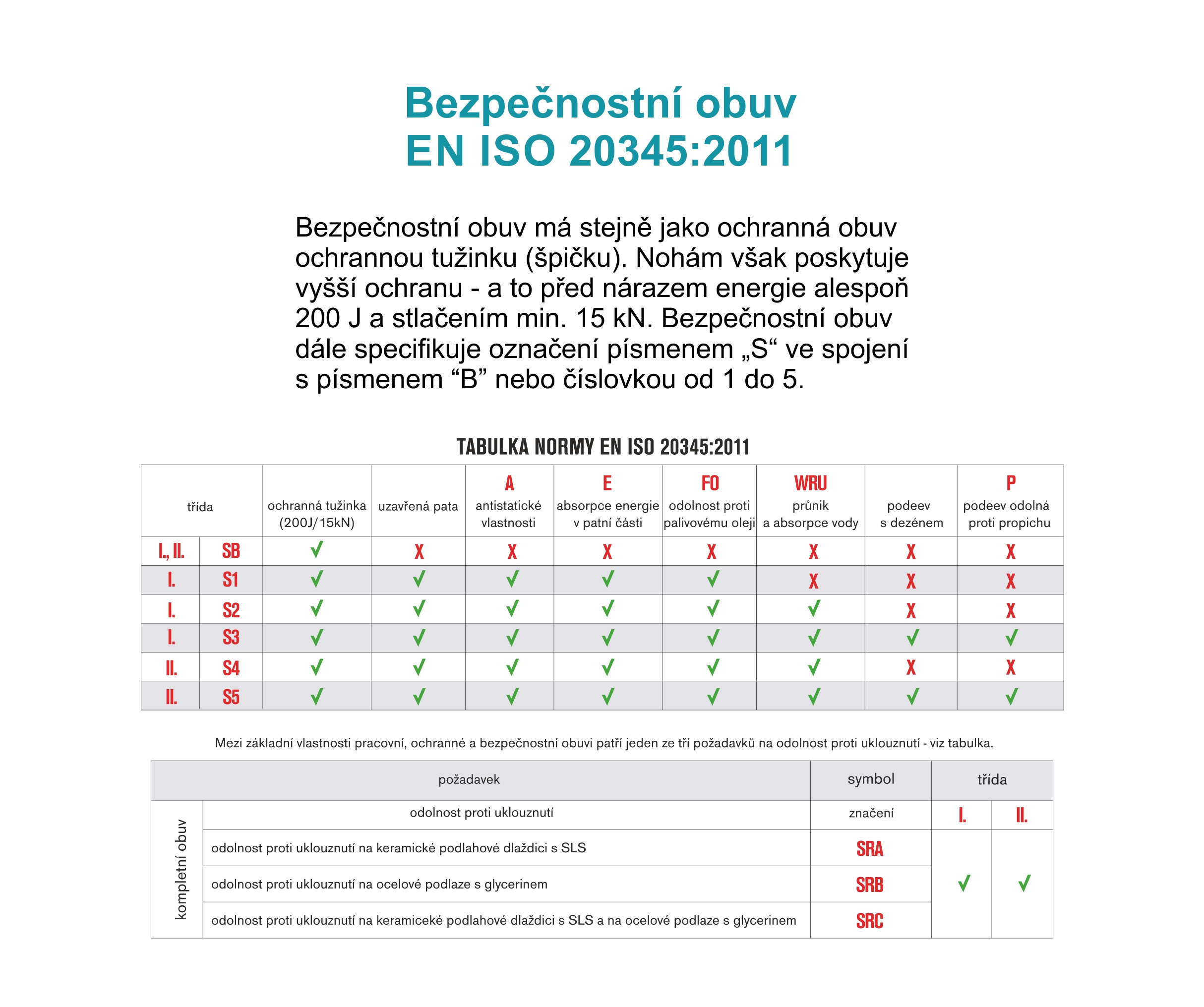 - podešev: protiskluzová, antistatická, olejivzdorná, odolná proti propichu